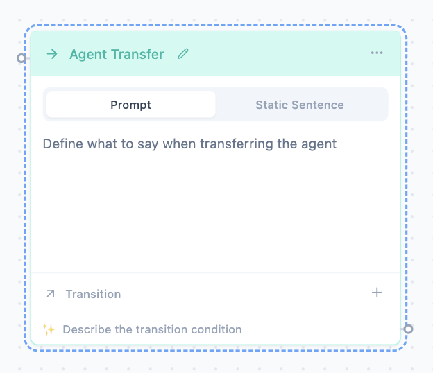 Agent Transfer hands the conversation to a different agent configuration (e.g., route from “triage” agent to “billing specialist” agent).